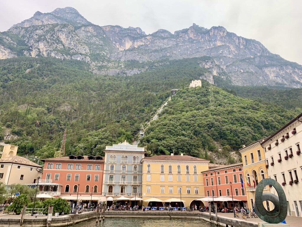 Nach dem Frühstück mit scheußlichem Kaffee, überlege ich, was heute auf dem Programm steht. Frank hatte mir den Tipp gegeben zum Lago di Ledro zu fahren. Komoot verrät: 600 Höhenmeter. Ob ich das will? Ich übertrage die Route auf den Tacho und fahre erstmal ins Zentrum von Riva. Eines steht fest, ich gehe heute schwimmen!