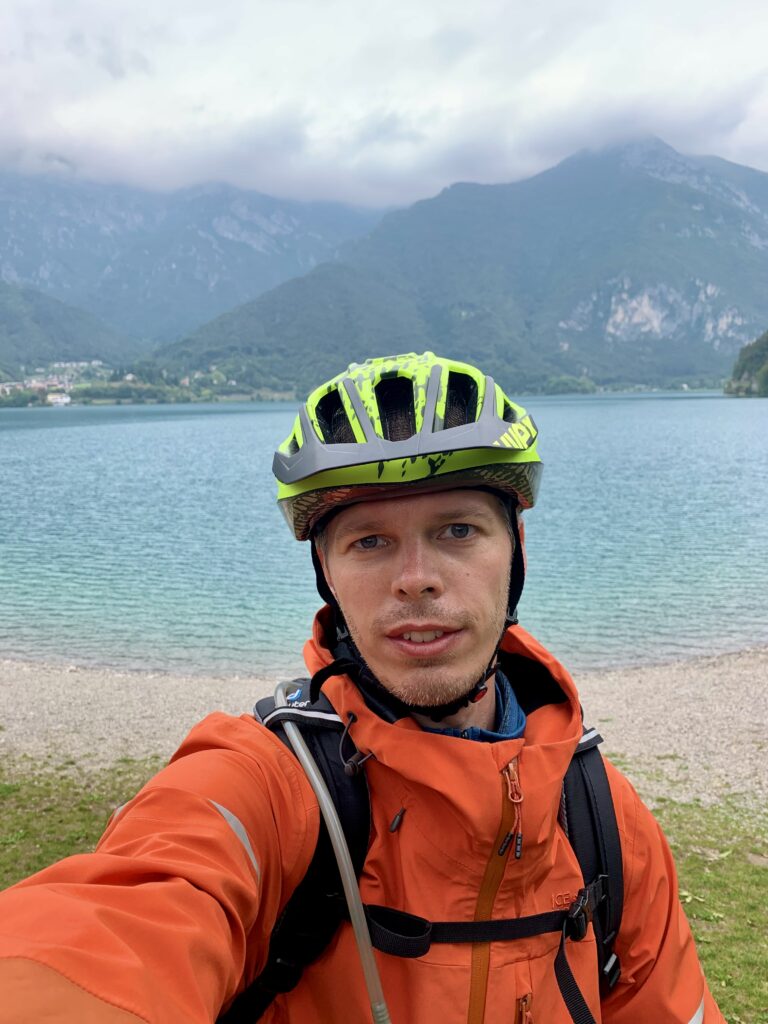 Angekommen bietet sich mir ein schöner Ausblick auf den See. Meinen eigentlichen Plan, schwimmen zu gehen, verwerfe ich. Hier oben ist es einfach zu kalt. Stattdessen fahre ich ein Stück am See entlang und begebe mich auf die Abfahrt zurück zum Gardasee. Viel besser!