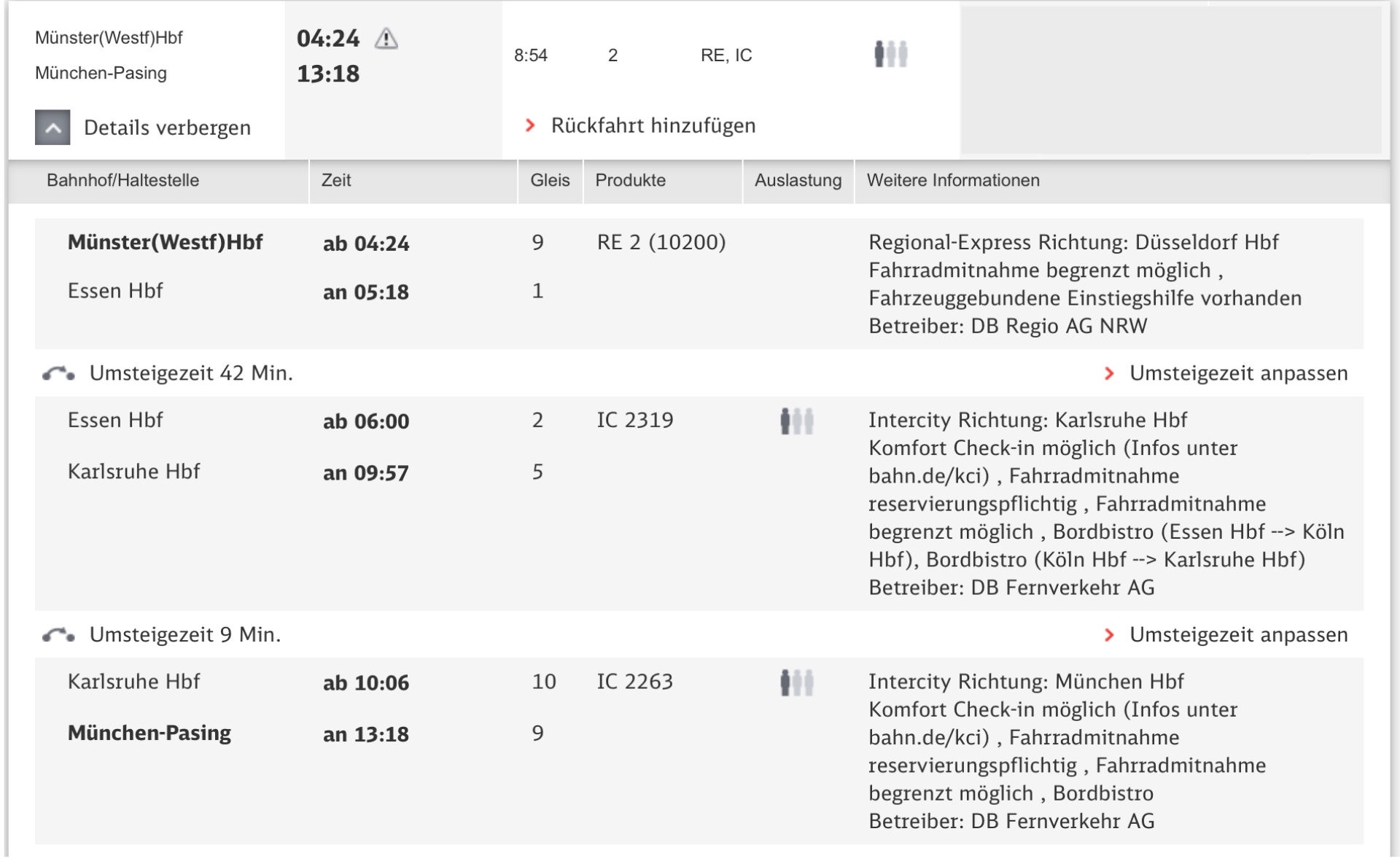 Schlussendlich ist es dann nicht der schöne Eurocity von Münster nach Klagenfurt geworden, in dem Wir um 6:30 hätten einsteigen und um 14:30 entspannt in München aussteigen können, sondern diese nette Verbindung: