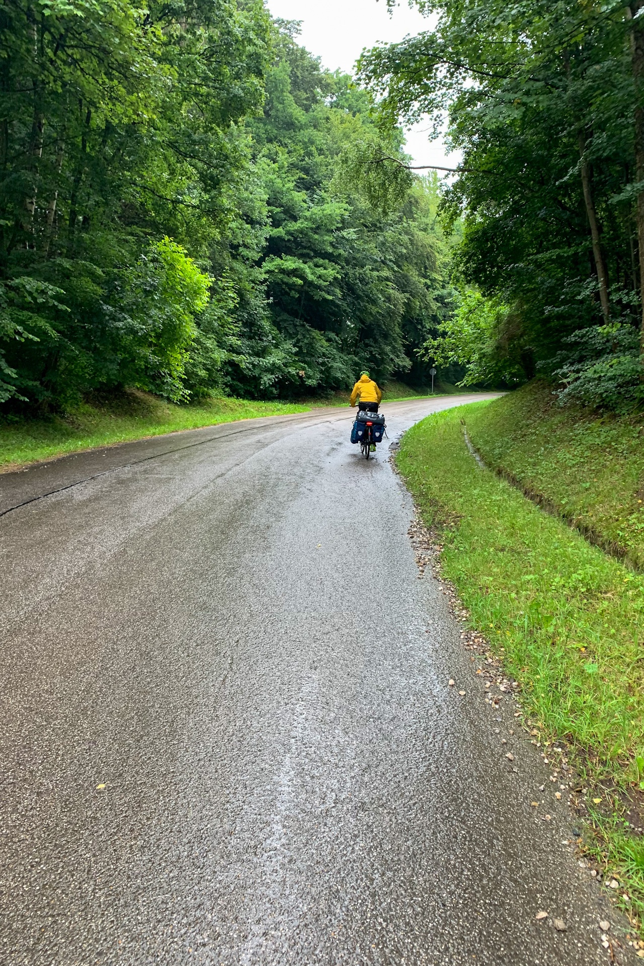 Die Strecke von Essen nach Karlsruhe am Rhein entlang ist wirklich sehr nett. Es wird endlich ein wenig bergig, ein schöner Vorgeschmack auf die nächsten Tage. Das Wetter ist leider nur mäßig und die Aussichten zum Nachmittag sehen eher schlechter als besser aus. Wir hoffen mal, dass der meiste Regen an uns vorbei fällt.