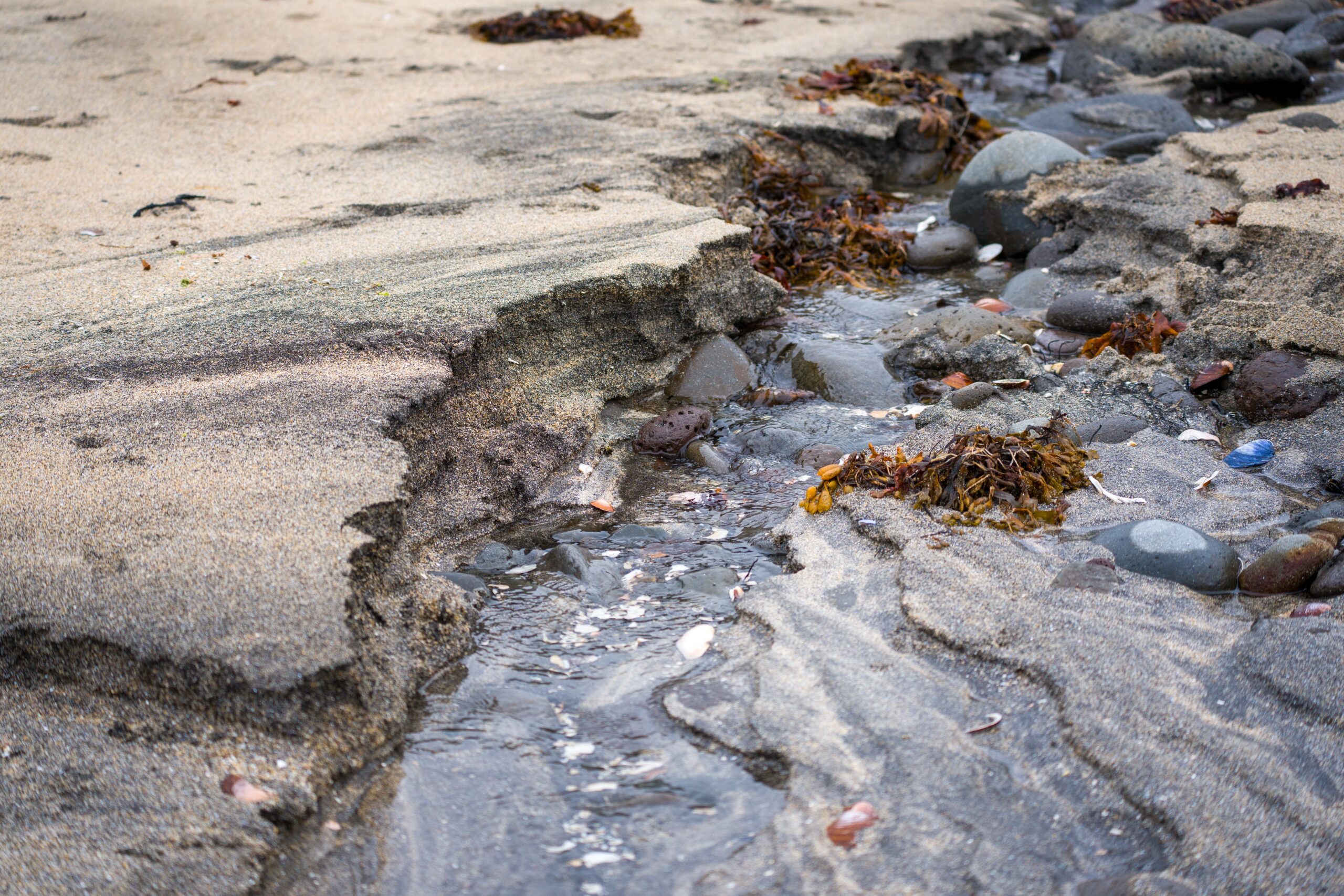Wir beobachten Wasservögel, schauen uns die Muscheln am Strand an und bewundern das absolut klare Wasser des Meeres und der Zuflüsse auf dem zumeist schwarzen Strand.