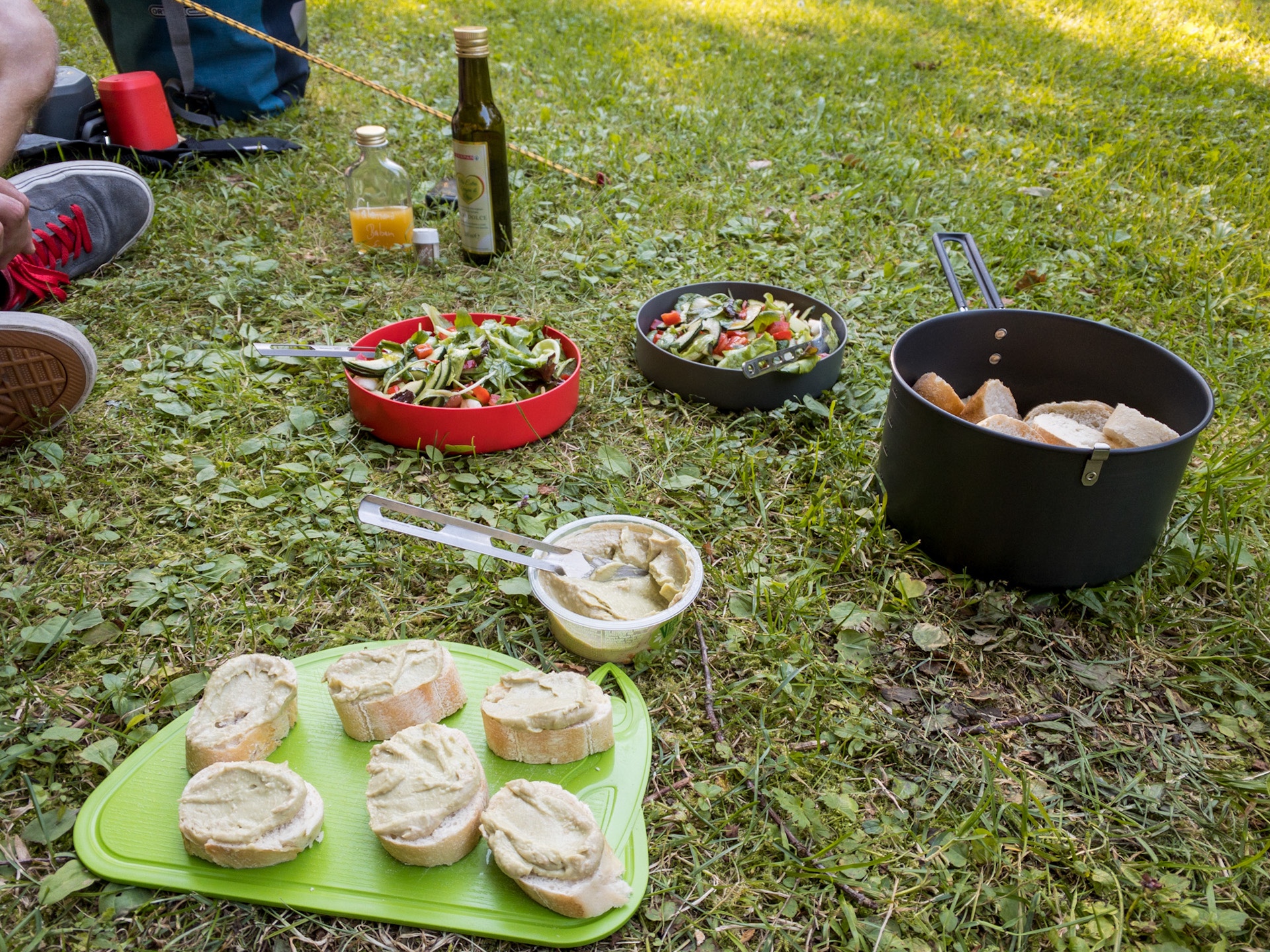 Auch den Rückweg zum Campingplatz können wir voll und ganz genießen. 10 Kilometer vor unserem Ziel machen wir einen Stop im Billa. Bisher haben wir uns bezüglich unserer abendlichen Verpflegung meist zurückgehalten. Mit nur einem Topf sind unsere Möglichkeiten leider etwas eingeschränkt, sodass es zumeist entweder Nudeln oder Reis mit irgendeiner Soße gegeben hat.