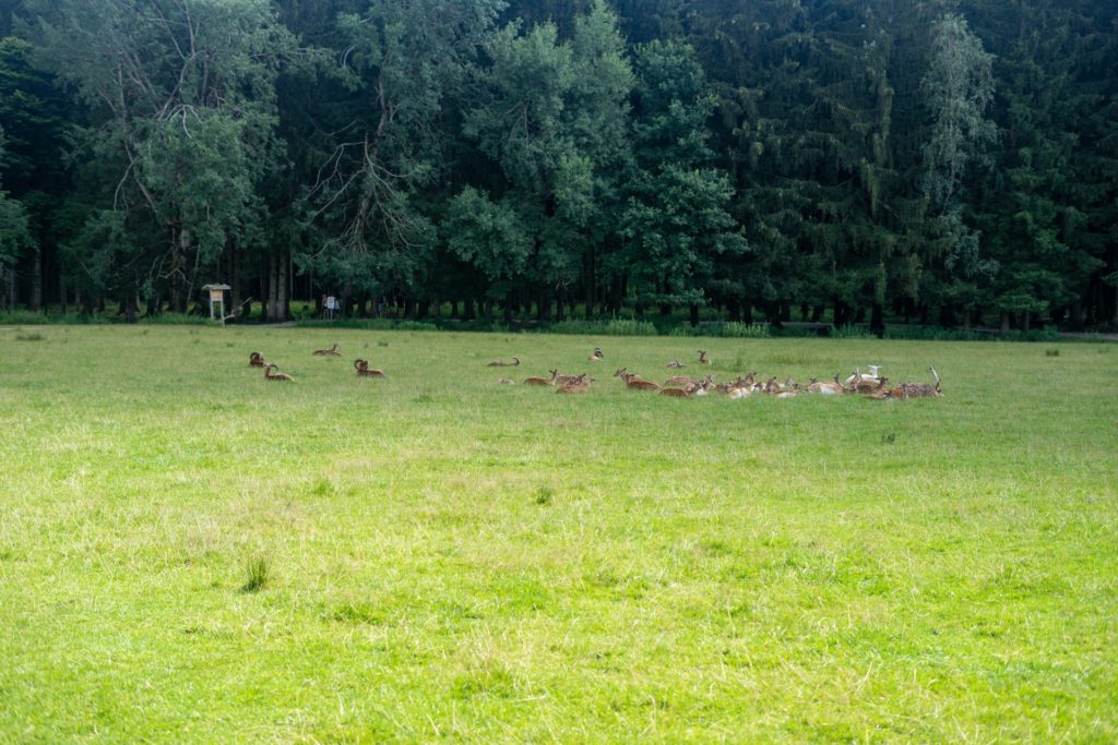 Nach einigen Kilometern und fast allen heute zu bewältigenden Höhenmetern kommen wir am BergTierPark vorbei und sehen Rehe, Widder und sogar ein Lama befindet sich unter den Tieren. Für Familien sicherlich einen Besuch wert.