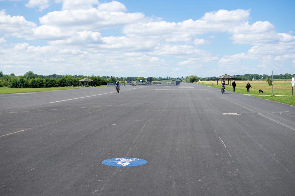 Weitgehend flach geht es nun weiter in Richtung München, dass sich vor unseren Blicken verbirgt. Wir sind nur noch 20 Kilometer entfernt und haben somit die Hälfte unserer Strecke hinter uns und noch immer sieht es sehr ländlich aus. 15 Kilometer vor München wird die Bebauung so langsam dichter. Und wir fahren durch den Landschaftspark Hachinger Tal auf der Landebahn Neubiberg. Ein komisches Gefühl