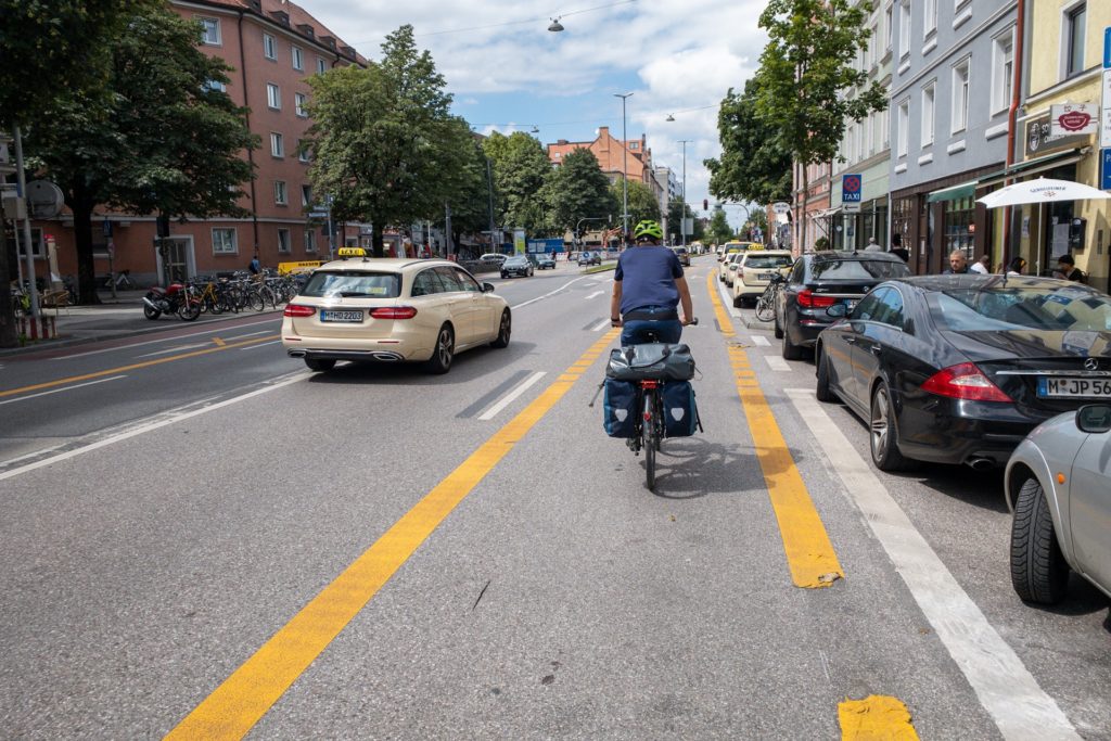 Wir bewegen uns weiter Richtung Innenstadt. Irgendwie ist es hier laut und trubelig. In den letzten Wochen sind wir immer nur am Wochenende in die Stadt gefahren und es waren zwar viele Menschen unterwegs, aber Baulärm hatten wir keinen. außerdem führen die überregionalen Radrouten meist auf ruhigen Wegen Richtung Stadt. Durch unseren Abstecher Richtung Unterhaching haben wir diese aber verlassen.