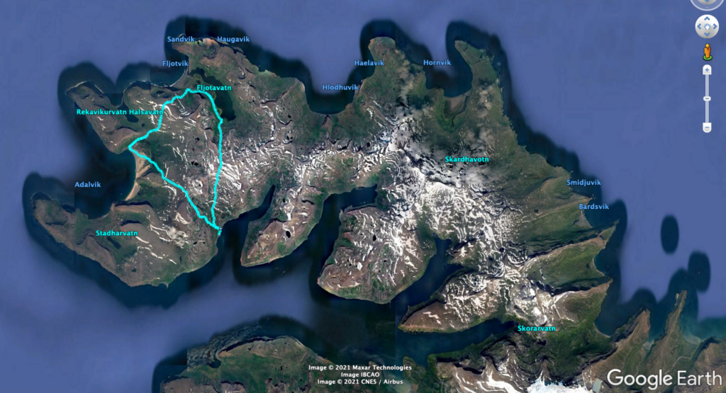 Unsere Wanderung auf Hornstrandir (6 Tage) hatte immer eine Tagesstrecke von ca. 15km geplant. Im Ende waren es dann aber „nur“ knapp 40 km. Die restlichen Kilometer holen wir beim nächsten Mal nach. Trotzdem eine sehr schöne Wandertour. Unsere Route habe ich euch mal als Kartenausschnitt unten eingebettet.