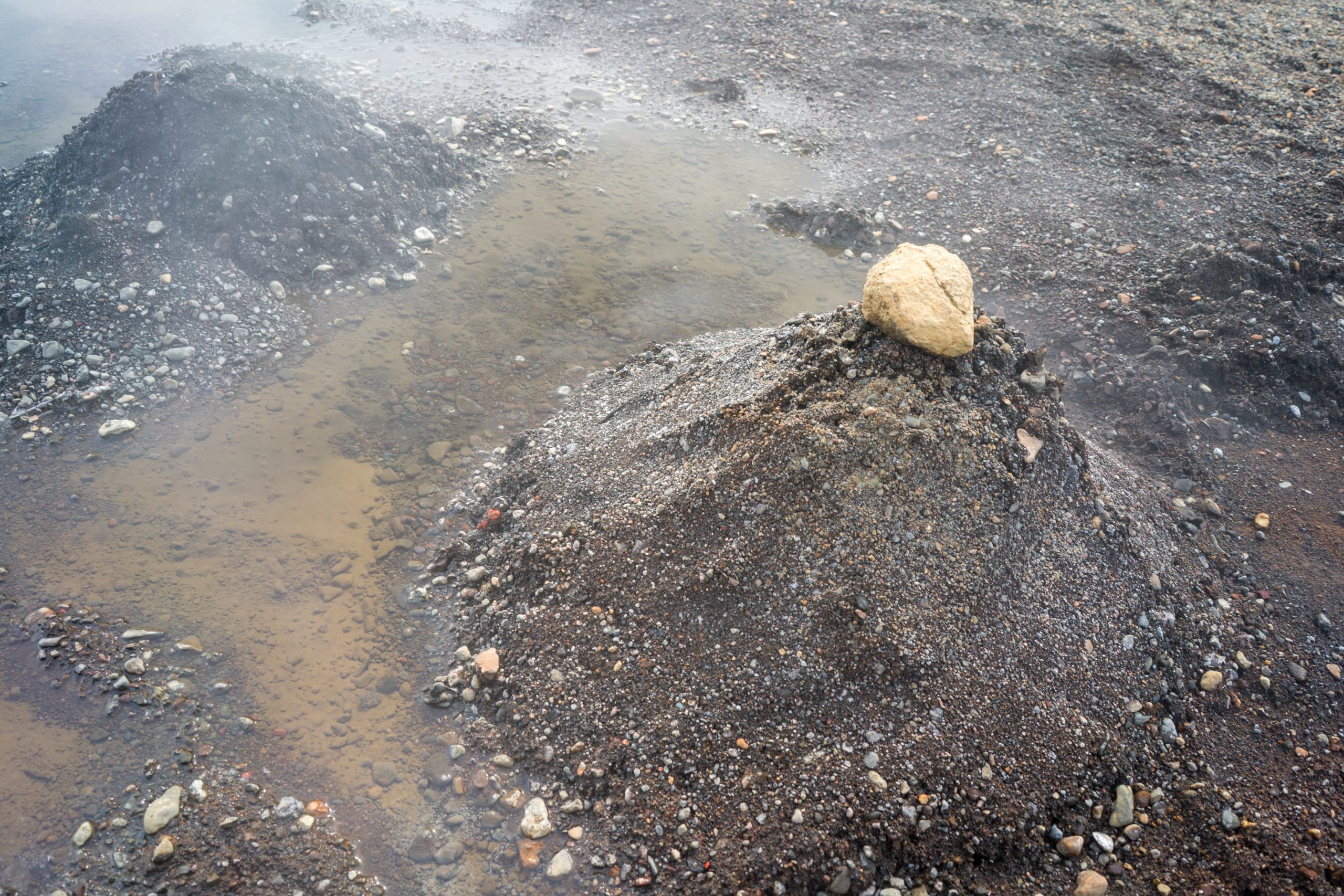 Als kleinen Zwischenstopp halten wir an einem See mit geothermaler Quelle. Hier ist der Boden so heiß, dass die Menschen aus dem nahegelegenen Spa ihr Brot vergraben und über 24 Stunden im Boden backen.