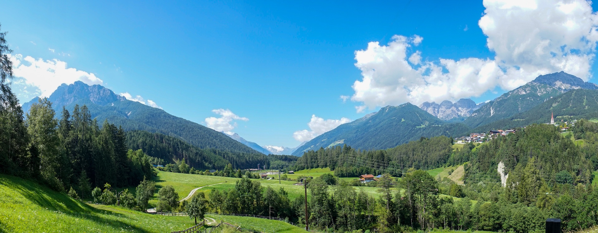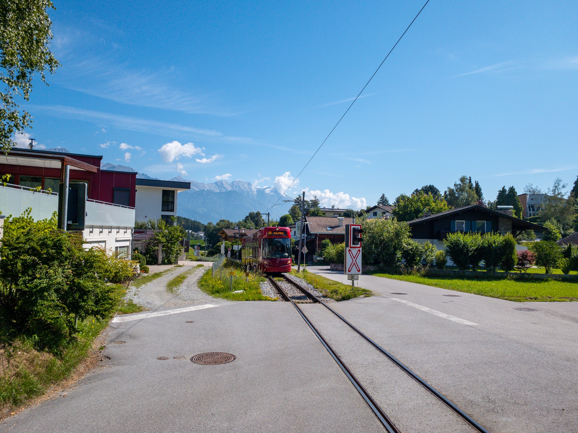 Es gibt so manche Entscheidungen, die überdenkt man mit etwas Erfahrung. Wir haben in den letzten Tagen die Erfahrung gemacht, dass längere Anstiege mit 10% Steigung für Radfahrer ohne Gepäck und mit einem Rennrad vielleicht noch machbar, für uns jedoch eine Spur zu steil sind. Also haben wir uns kurzerhand entschieden, die 200 Höhenmeter von Natters nach Schönberg im Stubaital zu umgehen, indem wir die Straßenbahn nach Telfes nehmen. So bleiben immer noch knackige 640 Höhenmeter Anstieg für uns übrig.