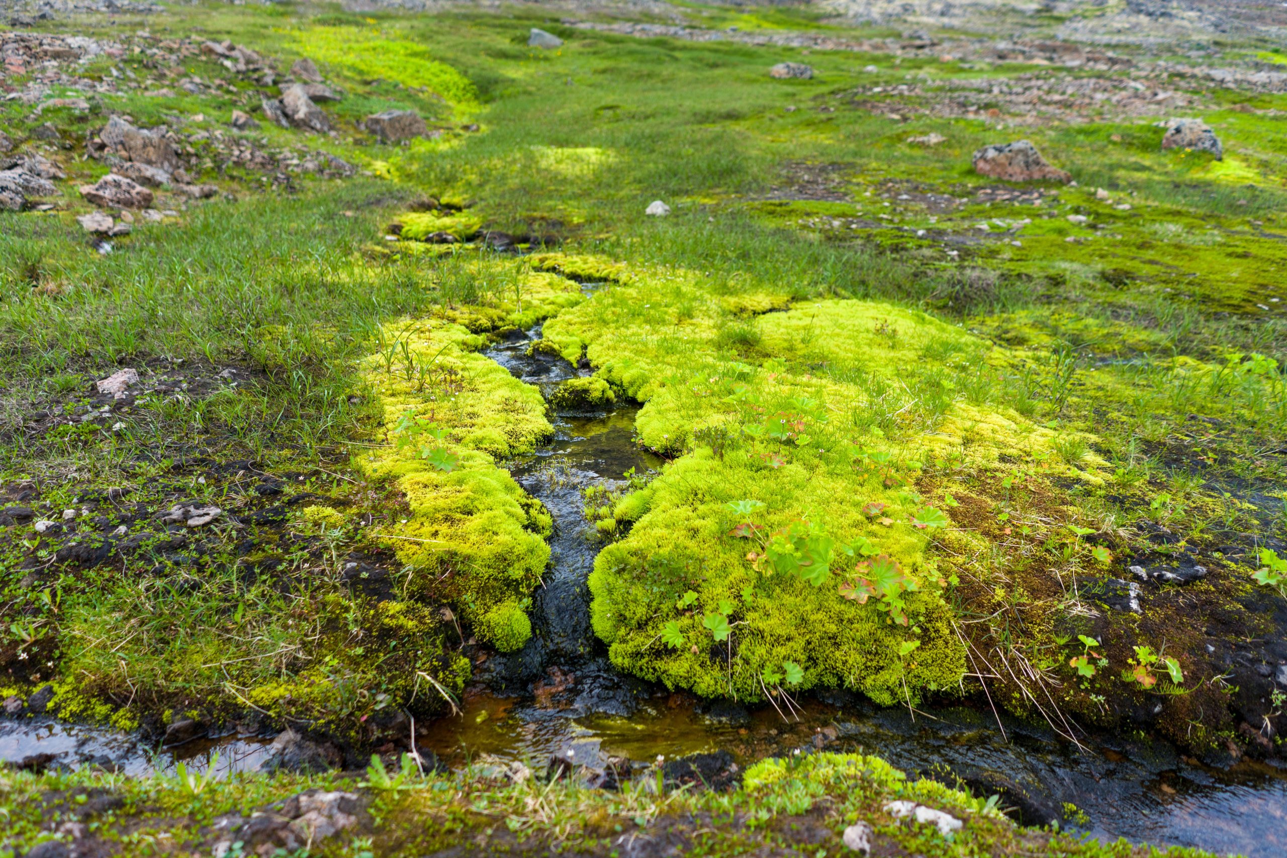 Nach einigen Kilometern ist kein klar erkennbarer Pfad mehr zu sehen und wir wandern über ein Lavagesteinsplateau. Hier weisen uns Steinhaufen alle 100 Meter den Weg. Plötzlich entdecken wir nur 50 Meter entfernt einen Polarfuchs. Aufgeregt krame ich nach meinem Teleobjektiv und der Fuchs verschwindet, bevor ich soweit bin.