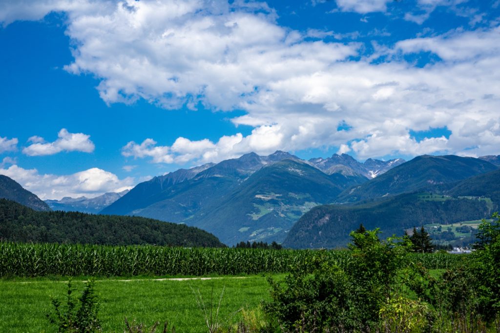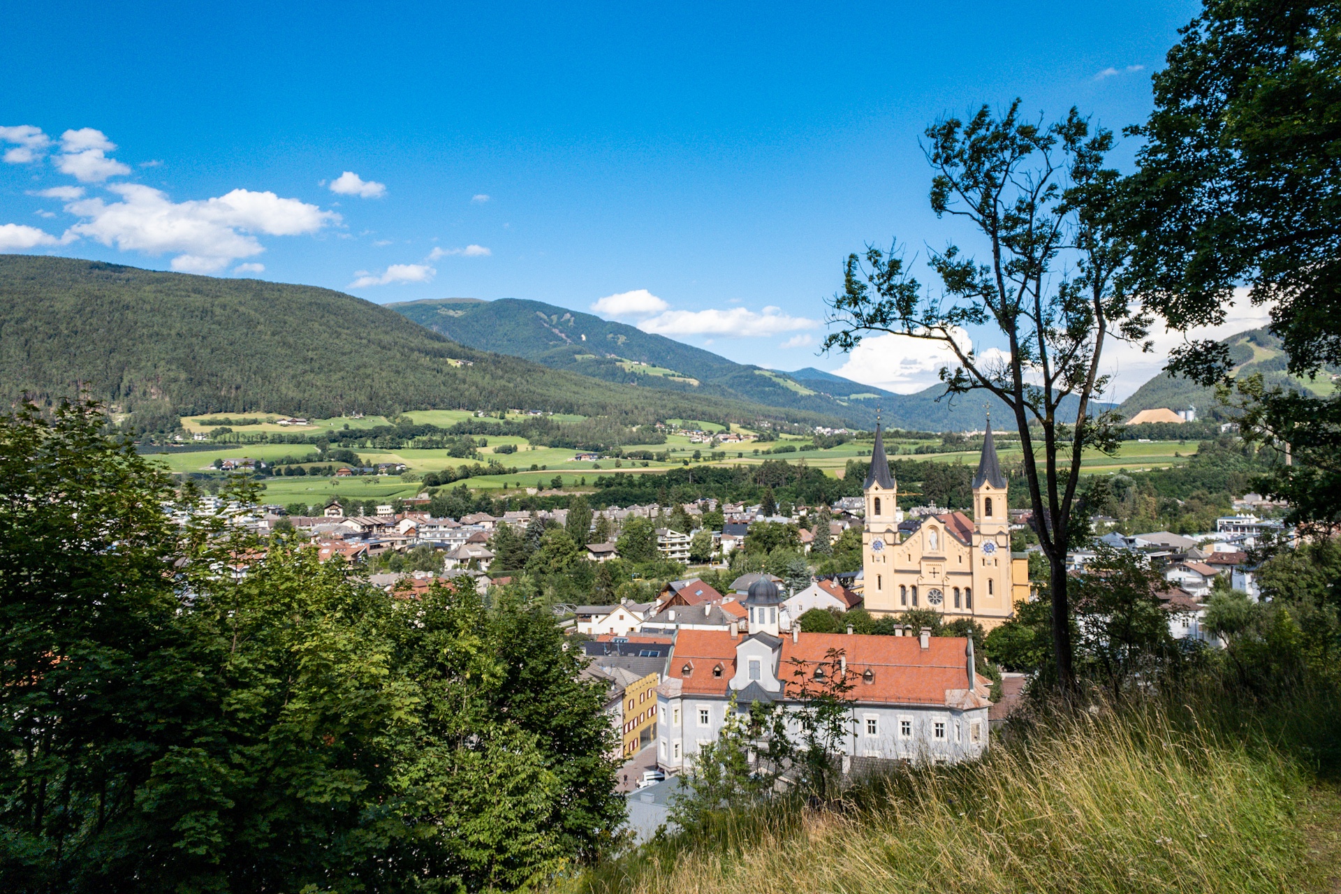 Nachdem wir den Morgen ebenfalls dazu genutzt haben, erneut unsere Wäsche zu waschen und aufzuhängen, wollten wir am Mittag mit dem Zug nach Bruneck. Als wir uns auf den Weg zum Bahnhof St. Lorenzen gemacht haben, fuhr der Zug geradewegs an uns vorbei, der nächste kommt laut Fahrplan erst eine halbe Stunde später. Also laufen wir kurzerhand die 3 Kilometer nach Bruneck. Mal wieder wunderschöne Landschaften, die wir natürlich auch für euch festgehalten haben.