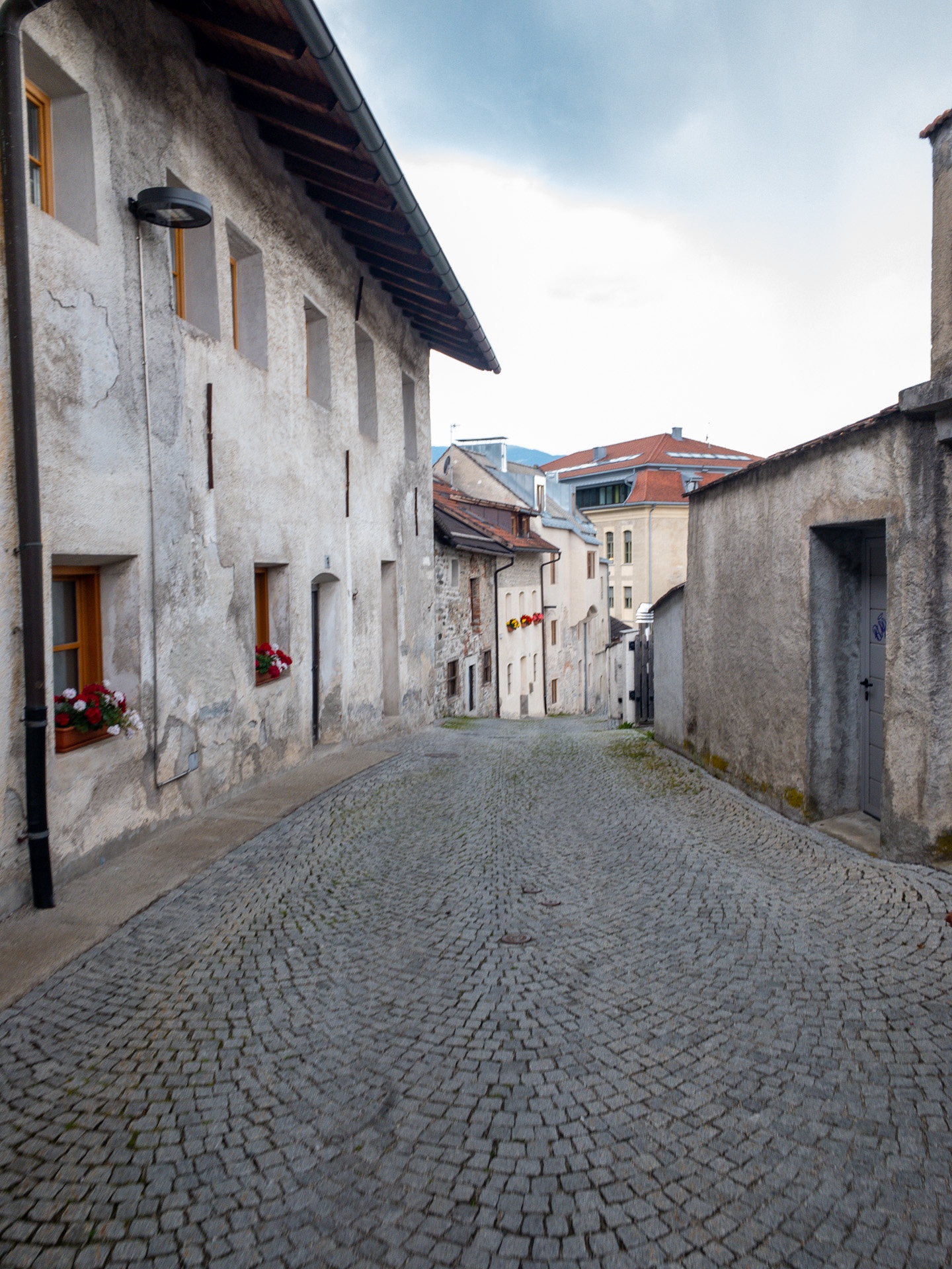 In Bruneck selber sind wir zunächst nicht sonderlich begeistert. Die Hauptstraße durch den Ort ist relativ stark befahren und rechts und links erblicken wir kaum ssehenswertes. Der erste Lichtblick ist die Gelateria Marlu samt Konditorei. Sehr leckeres Eis und noch viel besserer Kuchen. Christians Kommentar: „Die beste Linzer Torte, die ich je gegessen habe!“