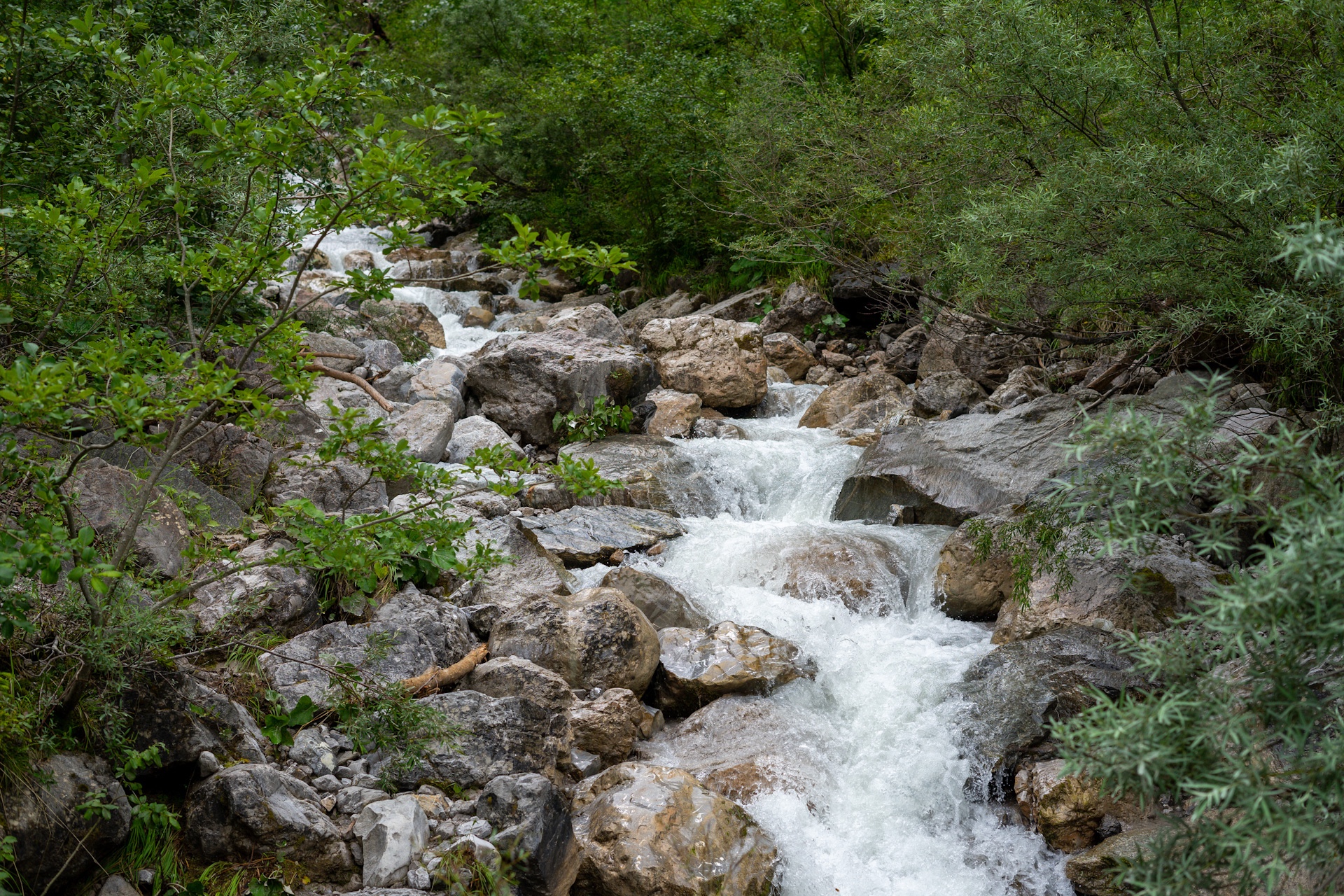 Zu Beginn der Tour bekommen wir nur wenige Tropfen ab und ziehen nach 10 Kilometern die Regenhosen wieder aus. Der tiefe Taleinschnitt und die mäßige Witterung verhindern meist die Sicht auf die schönen Berge der Lienzer Dolomiten. Also begnügen wir uns mit der neben uns fließenden Drau, welche zunächst nur als etwas breiterer Bach neben uns her fließt.